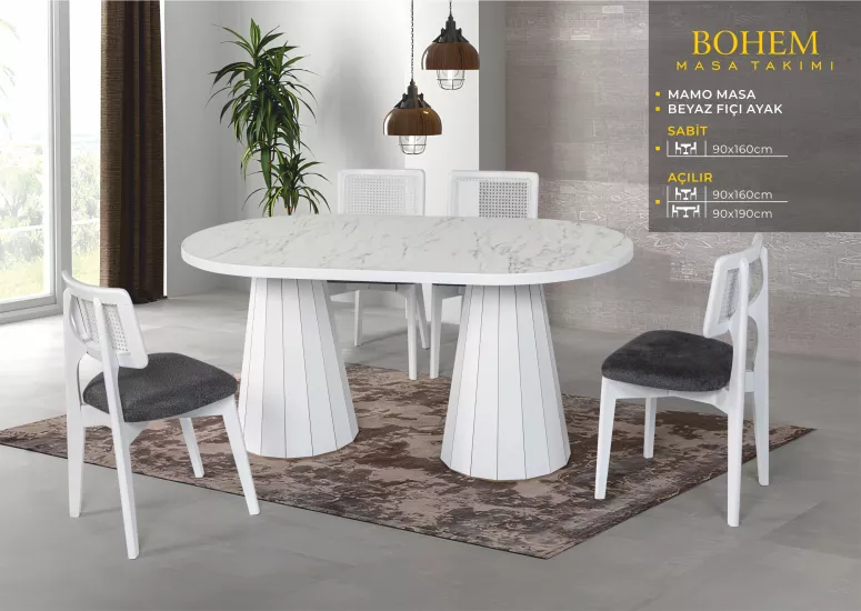BOHEM MASA, UMAY SANDALYE, BEYAZ, NATURAL, PTT...