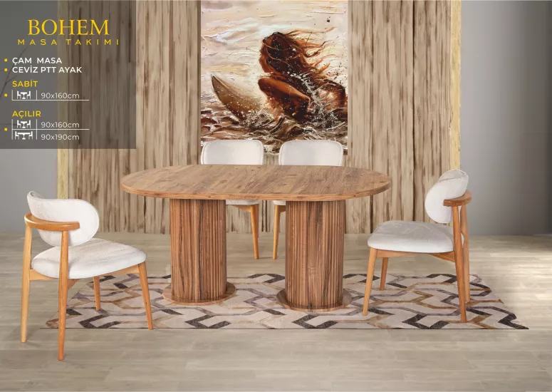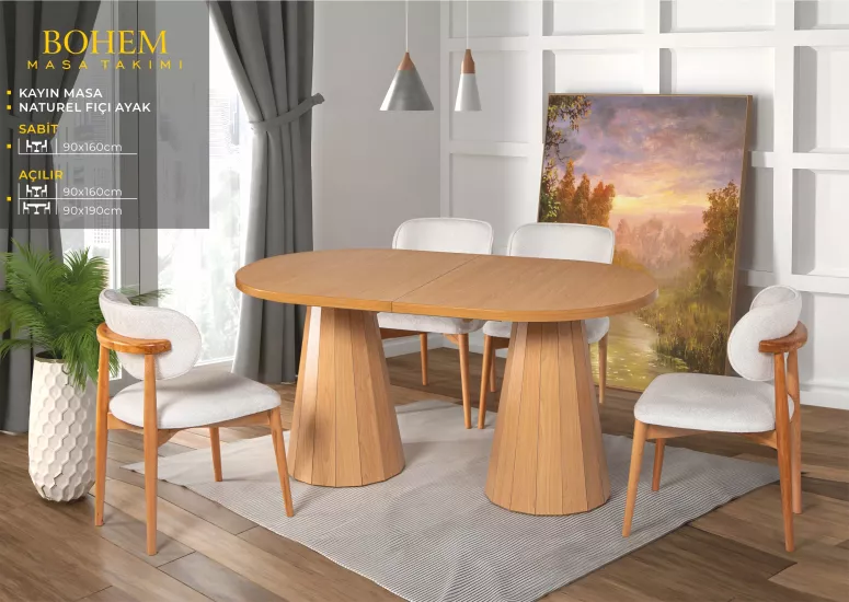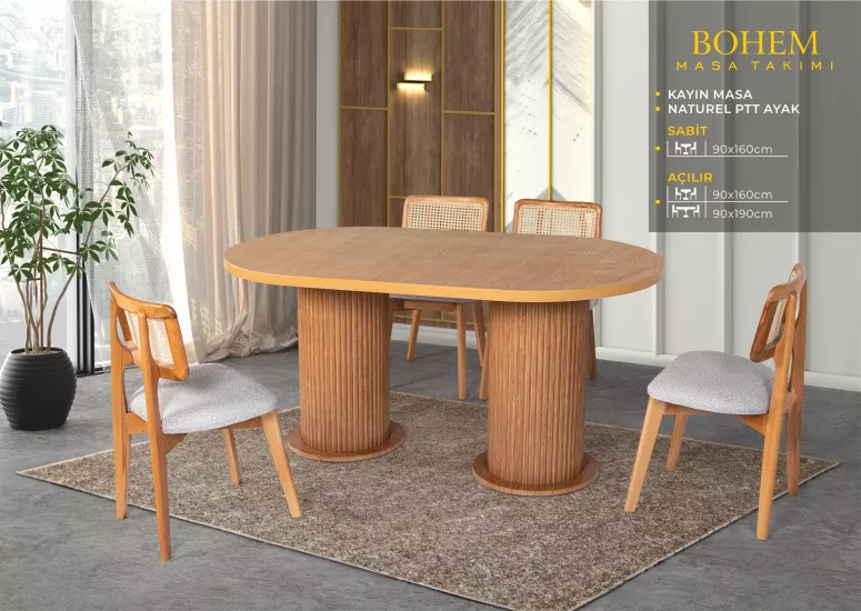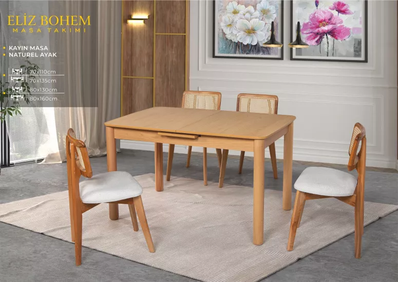 ELİZ BOHEM MASA, ZİON SANDALYE, KAYIN, NATURAL