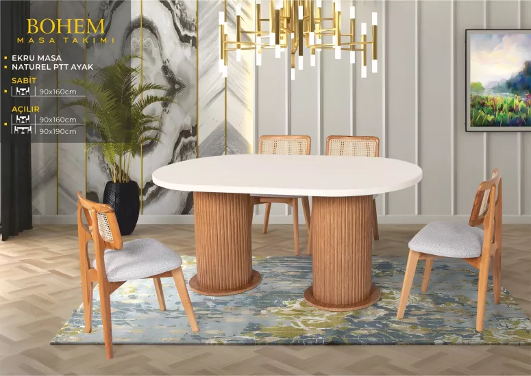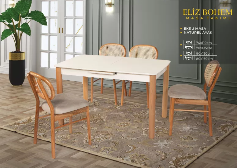 ELİZ BOHEM MASA, BADEM SANDALYE, EKRU, NATURAL