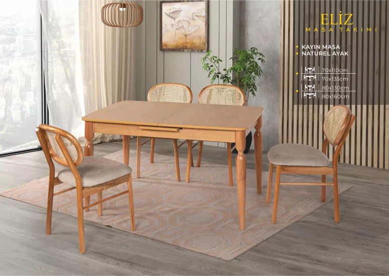 ELİZ MASA, BADEM SANDALYE, KAYIN, NATURAL
