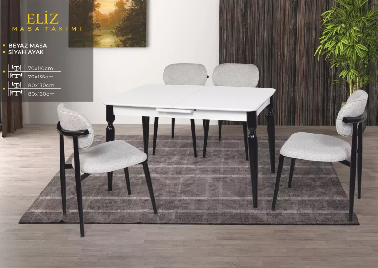 ELİZ MASA, UMAY METAL SANDALYE, BEYAZ, SİYAH