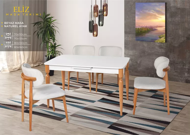 ELİZ MASA, UMAY SANDALYE, BEYAZ, NATURAL