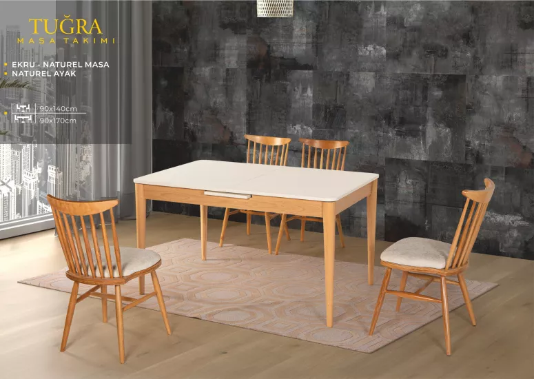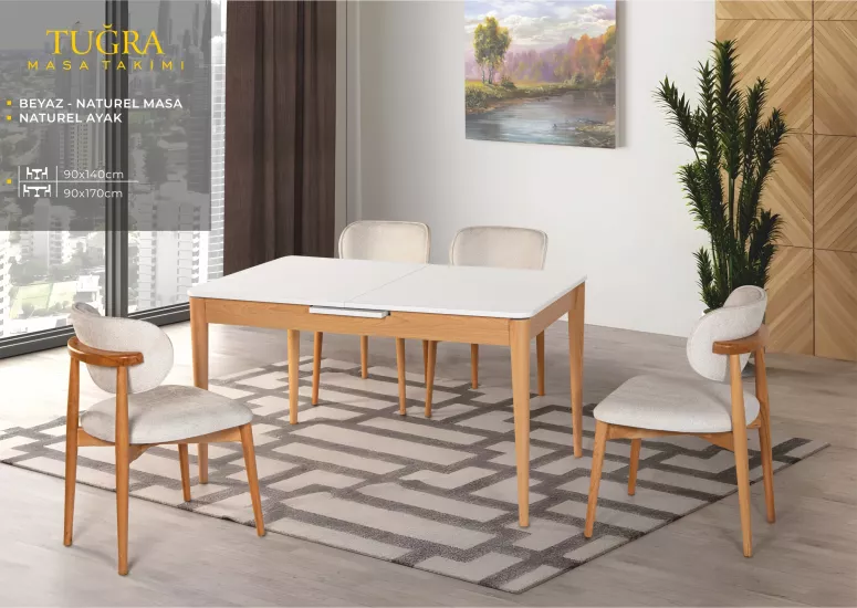 TUĞRA MASA, UMAY SANDALYE,, BEYAZ, NATURAL
