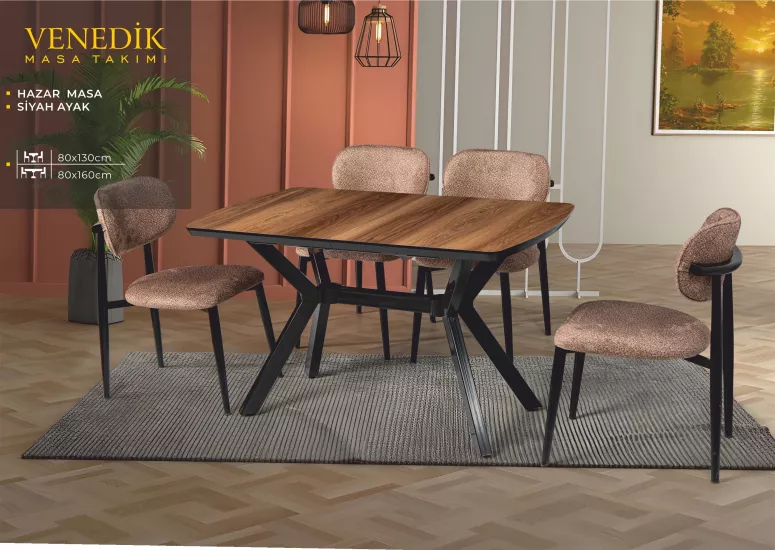 VENEDİK MASA, UMAY METAL SANDALYE, HAZAR, SİYAH