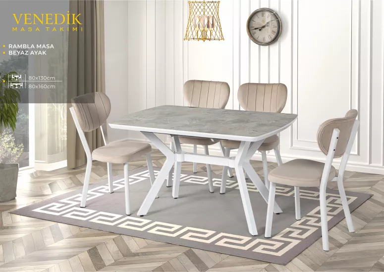 VENEDİK MASA, ÇAKIL SANDALYE, RAMBLA, BEYAZ