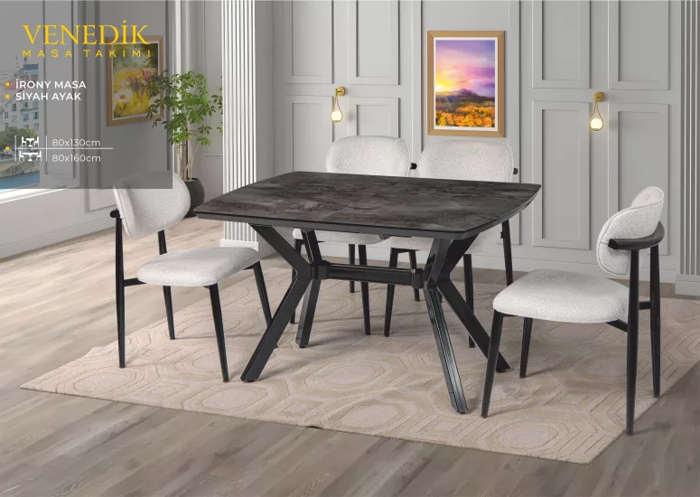 VENEDİK MASA, UMAY METAL SANDALYE, İRONY, SİYAH