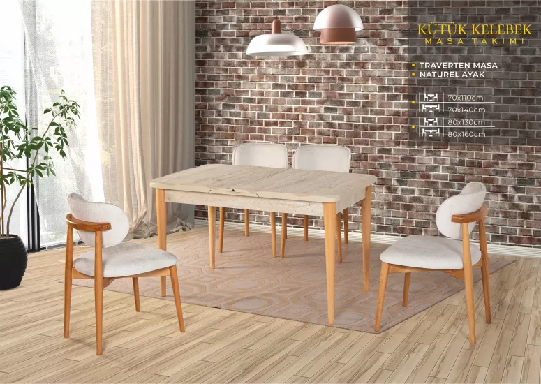KÜTÜK KELEBEK MASA, UMAY SANDALYE, KREM, NATURAL