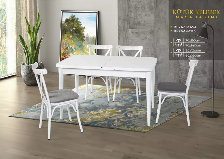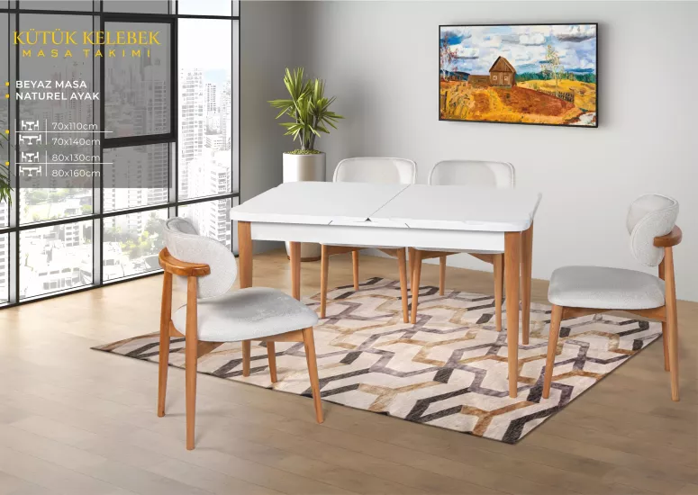 KÜTÜK KELEBEK MASA, UMAY SANDALYE, BEYAZ, NATURAL