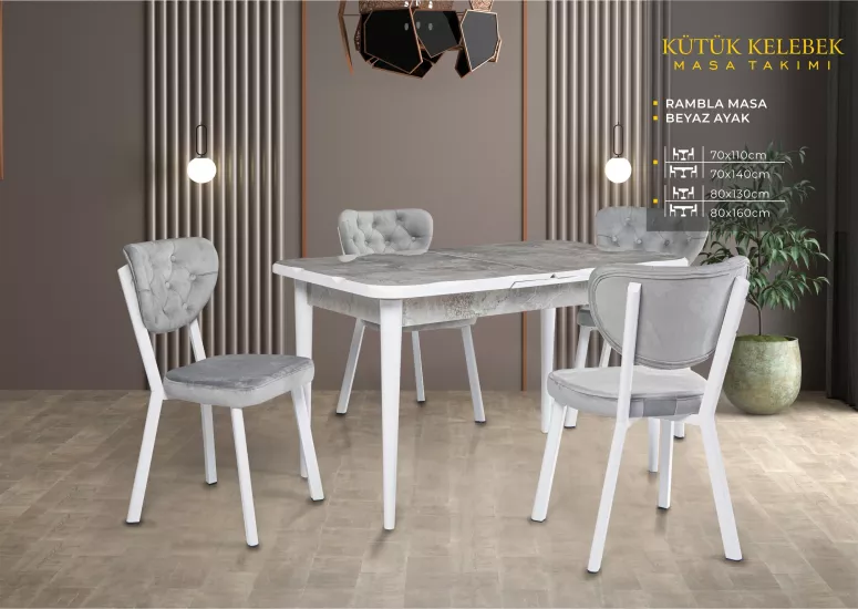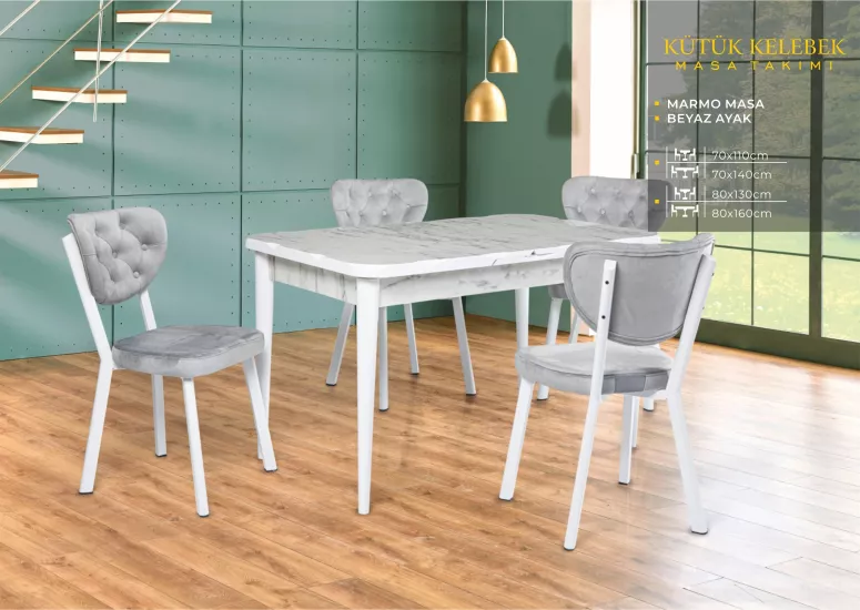 KÜTÜK KELEBEK MASA, RİVONE SANDALYE, MARMO, BEYAZ