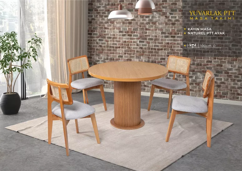 YUVARLAK PTT MASA, ZİON SANDALYE, KAYIN, NATURAL
