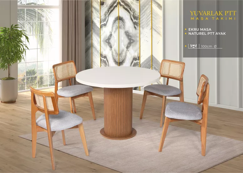 YUVARLAK PTT MASA, ZİON SANDALYE, EKRU, NATURAL